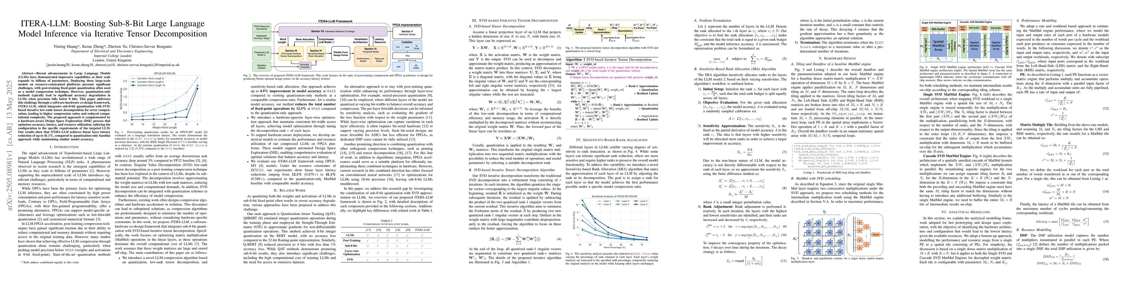 ITERA-LLM boosts sub-8-bit Large Language Model inference with iterative tensor decomposition, achieving up to 41.1% layer latency reduction while maintaining model accuracy.