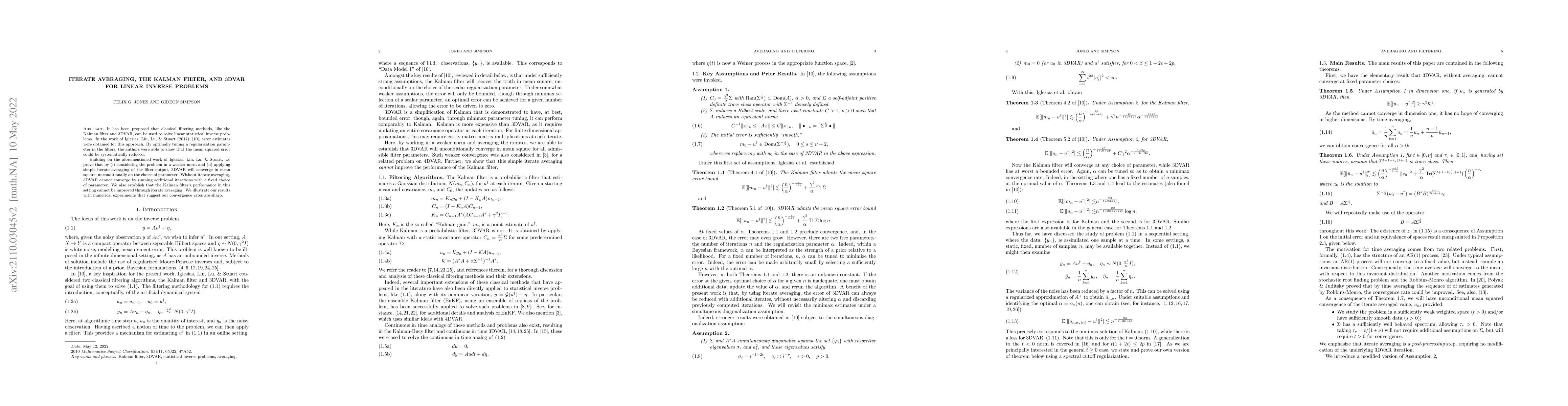 It has been proposed that classical filtering methods, like the Kalman filter and 3DVAR, can be used to solve linear statistical inverse problems. In the work of Iglesias, Lin, Lu, & Stuart (2017), error estimates were obtained for this approach. By optimally tuning a regularization parameter in the filters, the authors were able to show that the mean squared error could be systematically reduced. Building on the aforementioned work of Iglesias, Lin, Lu, & Stuart, we prove that by (i) considering the problem in a weaker norm and (ii) applying simple iterate averaging of the filter output, 3DVAR will converge in mean square, unconditionally on the choice of parameter. Without iterate averaging, 3DVAR cannot converge by running additional iterations with a fixed choice of parameter. We also establish that the Kalman filter's performance in this setting cannot be improved through iterate averaging. We illustrate our results with numerical experiments that suggest our convergence rates are sharp.