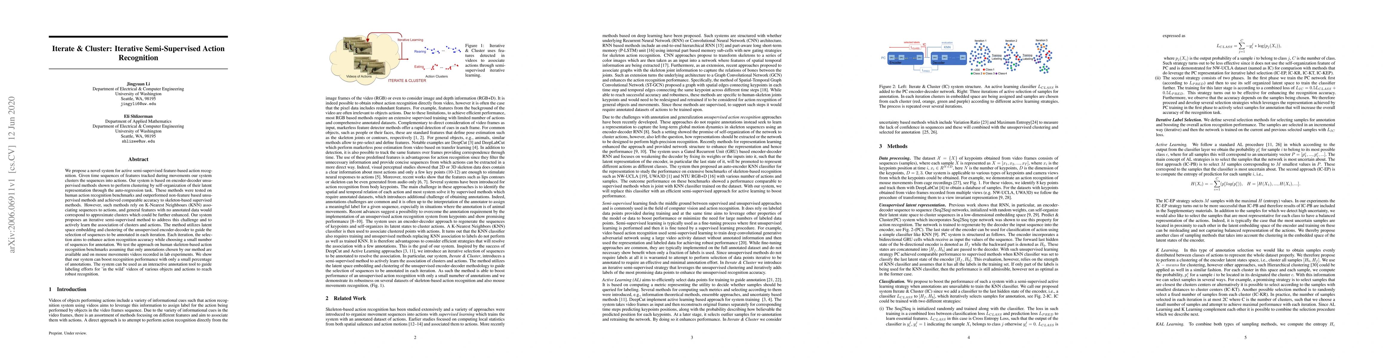 This paper introduces an iterative semi-supervised system for action recognition using time sequences of tracked features. The system enhances clustering and recognition accuracy through an active learning approach that selects a minimal number of sequences for annotation in each iteration, significantly improving performance with limited labeled data.