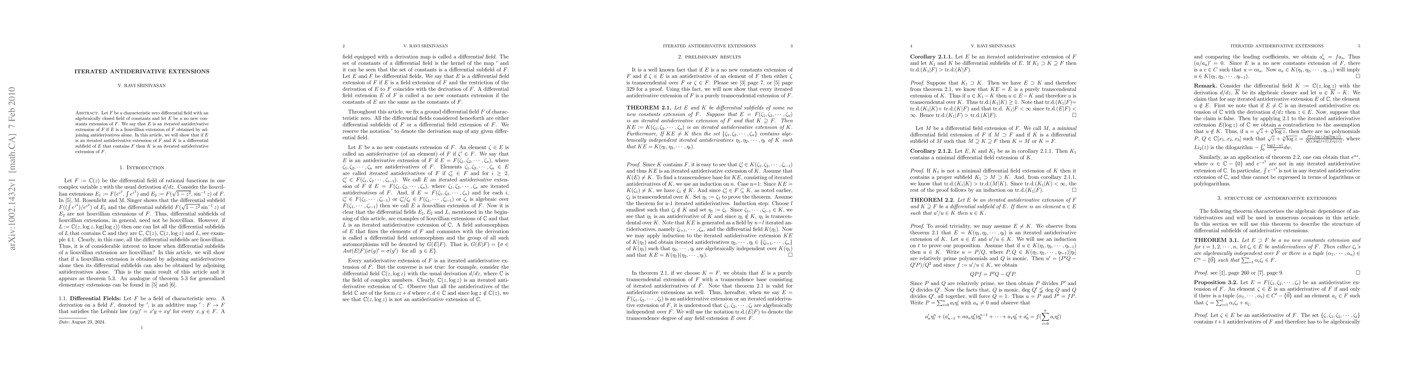 A new class of differential extensions called iterated antiderivative extensions is introduced, showing that a subfield containing an algebraically closed field of constants can also be obtained via the addition of antiderivatives only.