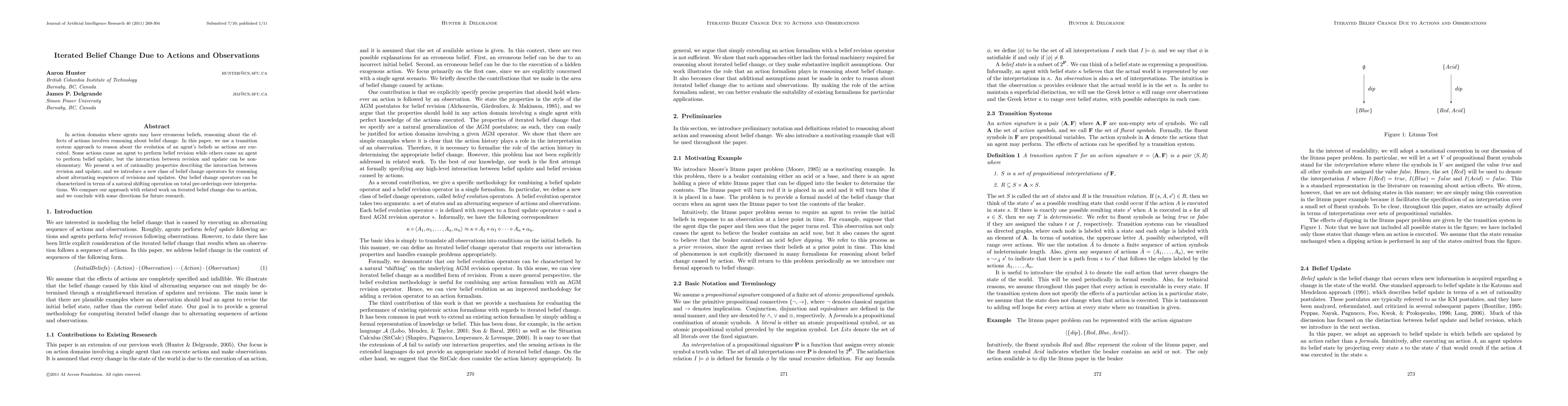 In action domains where agents may have erroneous beliefs, reasoning about the effects of actions involves reasoning about belief change. In this paper, we use a transition system approach to reason about the evolution of an agents beliefs as actions are executed. Some actions cause an agent to perform belief revision while others cause an agent to perform belief update, but the interaction between revision and update can be non-elementary. We present a set of rationality properties describing the interaction between revision and update, and we introduce a new class of belief change operators for reasoning about alternating sequences of revisions and updates. Our belief change operators can be characterized in terms of a natural shifting operation on total pre-orderings over interpretations. We compare our approach with related work on iterated belief change due to action, and we conclude with some directions for future research.