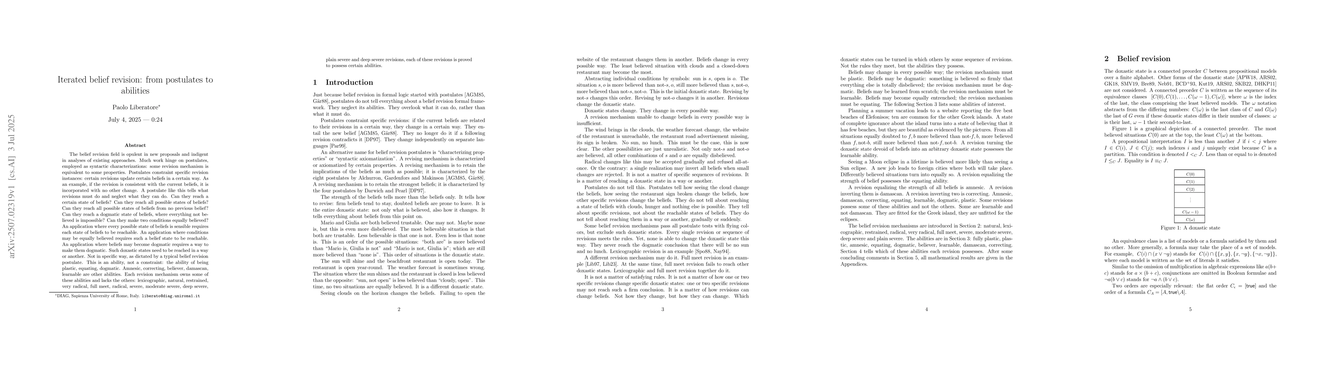 This paper explores belief revision mechanisms, shifting focus from postulate-based constraints to abilities. It identifies various belief-revision 'abilities' such as plasticity, equating, dogmatism, amnesia, correction, learning, and categorizes existing mechanisms like lexicographic, natural, restrained, radical revisions etc. based on these abilities.