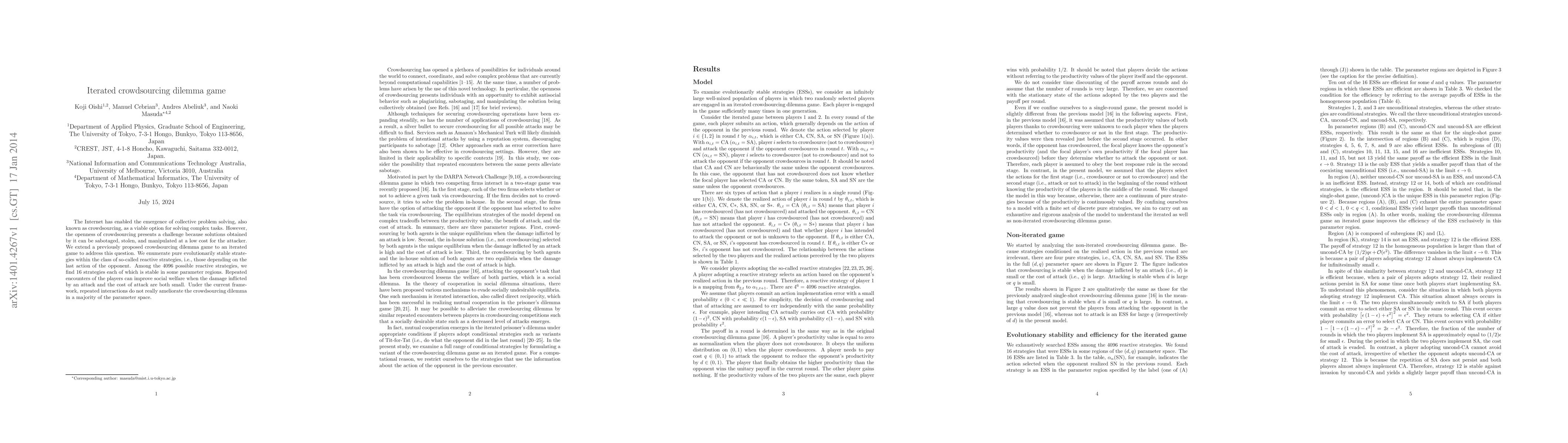 This paper explores an iterated crowdsourcing dilemma game to address the challenges of open-source problem solving, identifying 16 evolutionarily stable strategies among 4096 possible reactive strategies. While repeated interactions can enhance social welfare under certain conditions, they do not generally resolve the crowdsourcing dilemma.