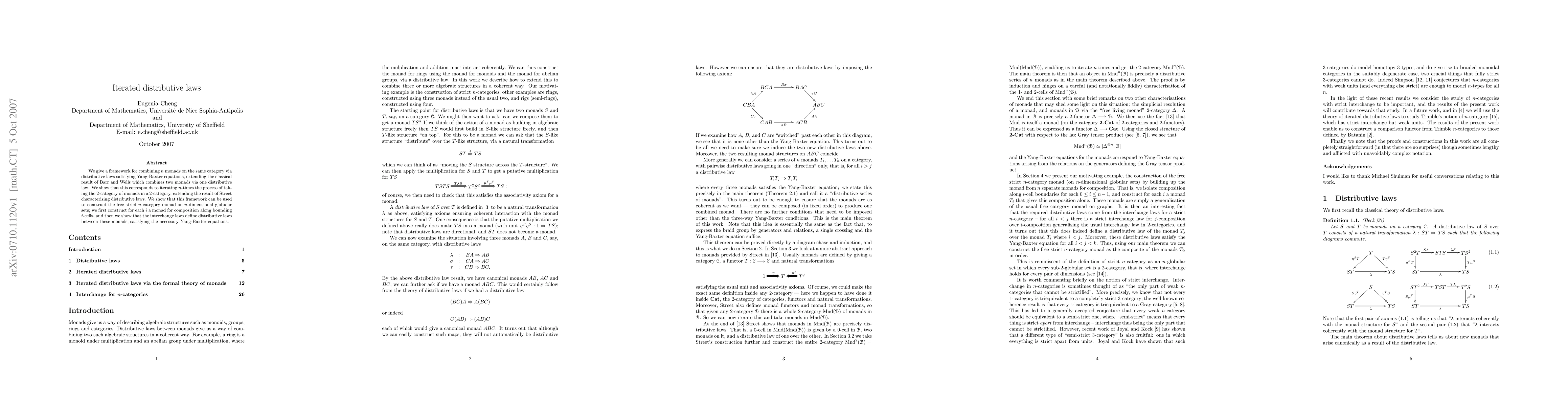 This paper presents a framework for combining $n$ monads using distributive laws that satisfy Yang-Baxter equations, extending classical methods. It constructs the free strict $n$-category monad on $n$-dimensional globular sets by iterating the process of taking monads in a 2-category.