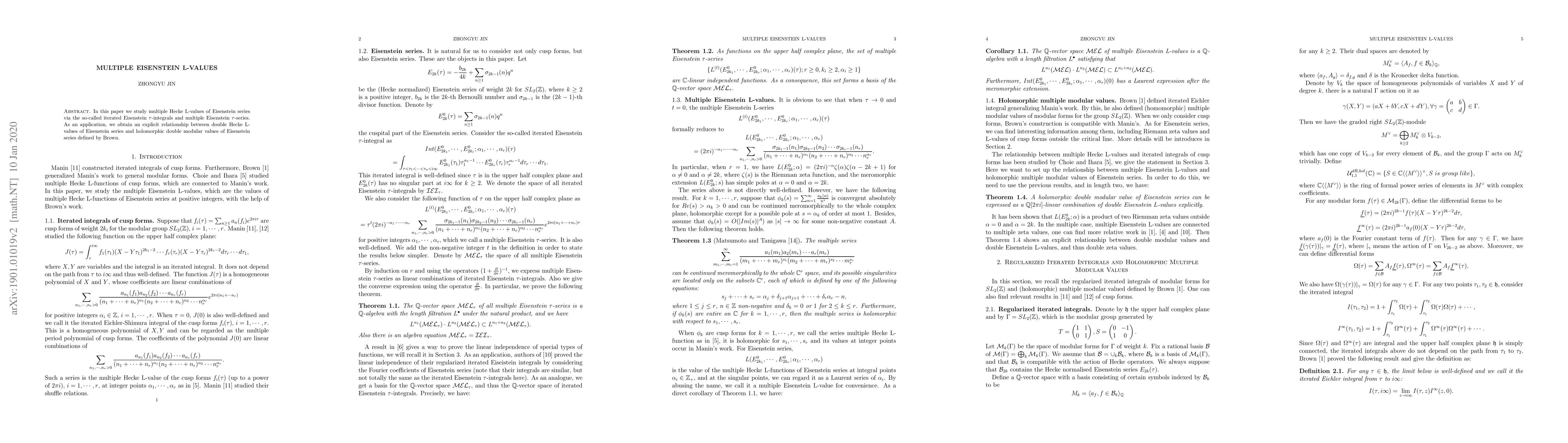 This paper investigates iterated Eisenstein {\tau}-integrals and multiple Eisenstein L-series, revealing their algebraic structures as Q-algebras and establishing their linear independence. It also connects these functions to iterated Eisenstein integrals and Hecke L-functions, and explores the relationship between double Eisenstein L-functions and holomorphic double modular values.