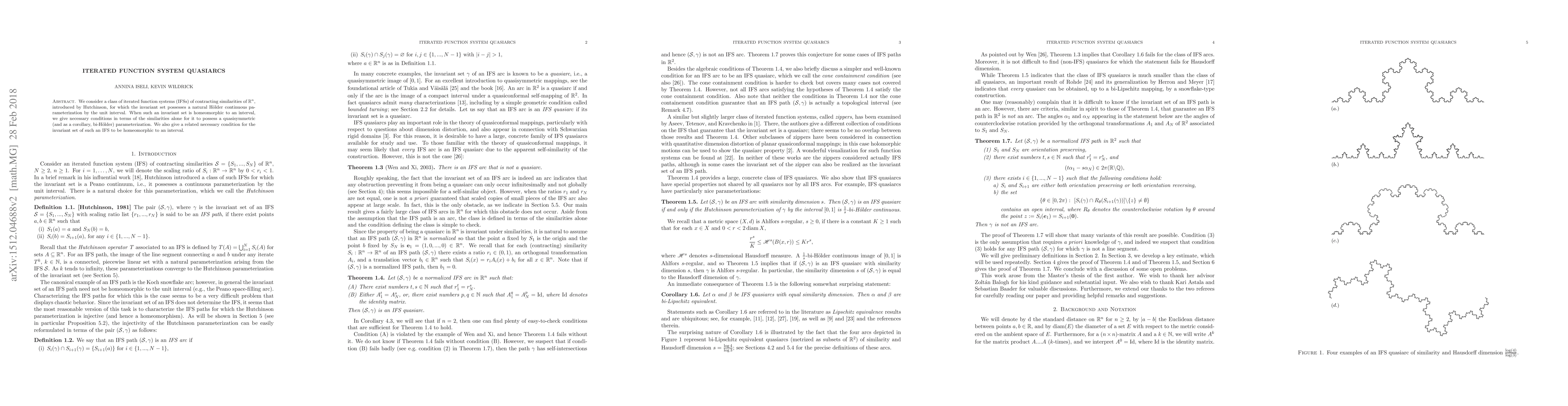 We consider a class of iterated function systems (IFSs) of contracting similarities of $R^n$, introduced by Hutchinson, for which the invariant set possesses a natural H\"older continuous parameterization by the unit interval. When such an invariant set is homeomorphic to an interval, we give necessary conditions in terms of the similarities alone for it to possess a quasisymmetric (and as a corollary, bi-H\"older) parameterization. We also give a related necessary condition for the invariant set of such an IFS to be homeomorphic to an interval.