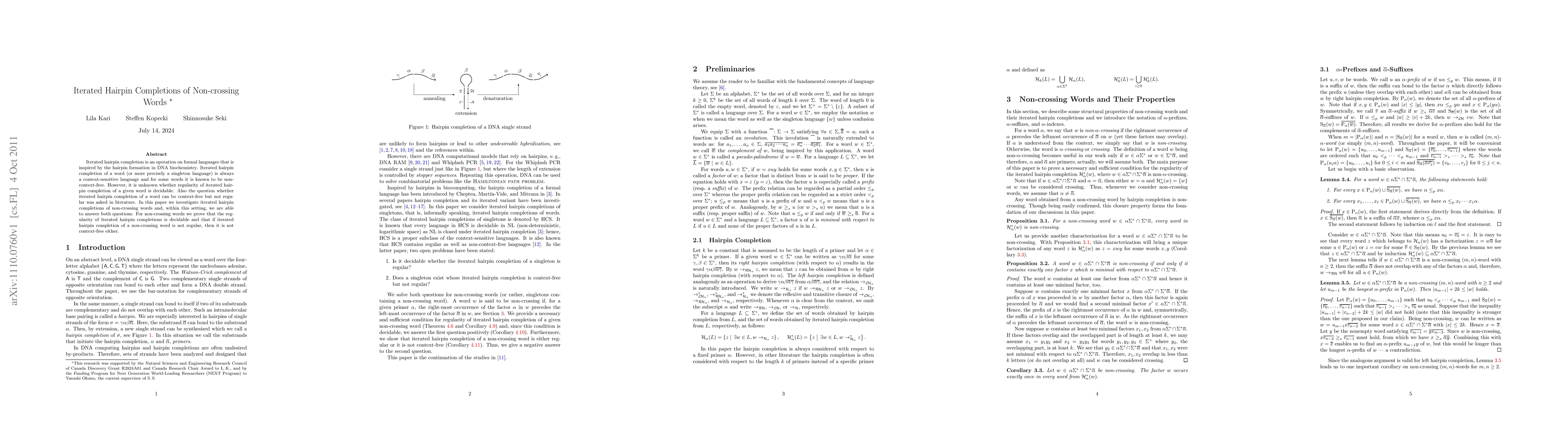 Iterated hairpin completion is an operation on formal languages that is inspired by the hairpin formation in DNA biochemistry. Iterated hairpin completion of a word (or more precisely a singleton language) is always a context-sensitive language and for some words it is known to be non-context-free. However, it is unknown whether regularity of iterated hairpin completion of a given word is decidable. Also the question whether iterated hairpin completion of a word can be context-free but not regular was asked in literature. In this paper we investigate iterated hairpin completions of non-crossing words and, within this setting, we are able to answer both questions. For non-crossing words we prove that the regularity of iterated hairpin completions is decidable and that if iterated hairpin completion of a non-crossing word is not regular, then it is not context-free either.