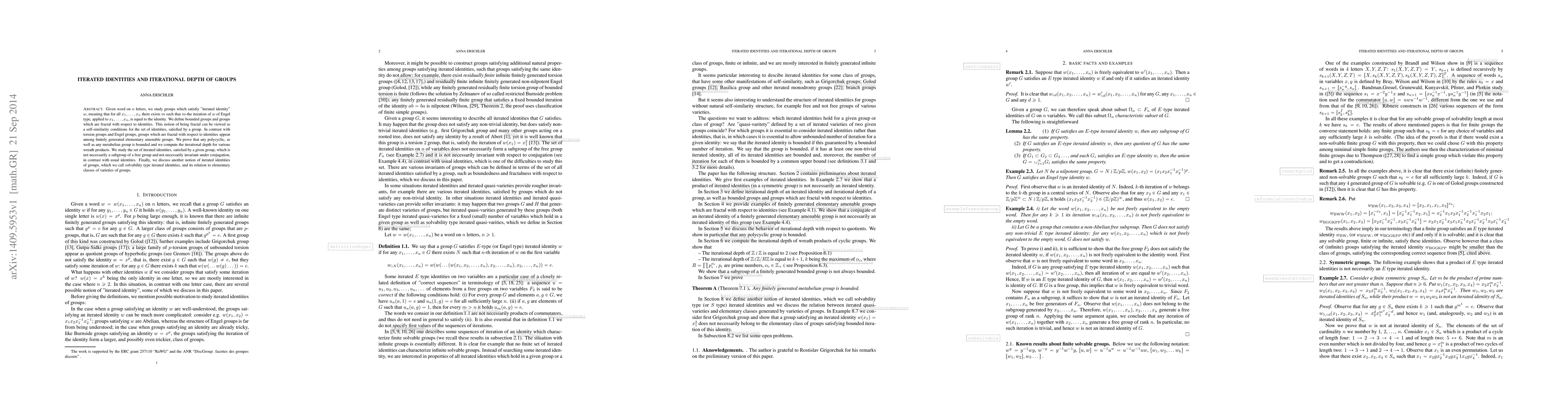 This paper investigates groups that satisfy iterated Engel-type identities, defining bounded and fractal groups with respect to these identities. It proves that polycyclic and metabelian groups are bounded and computes iterational depth for wreath products, while discussing the broader implications for elementary amenable groups.