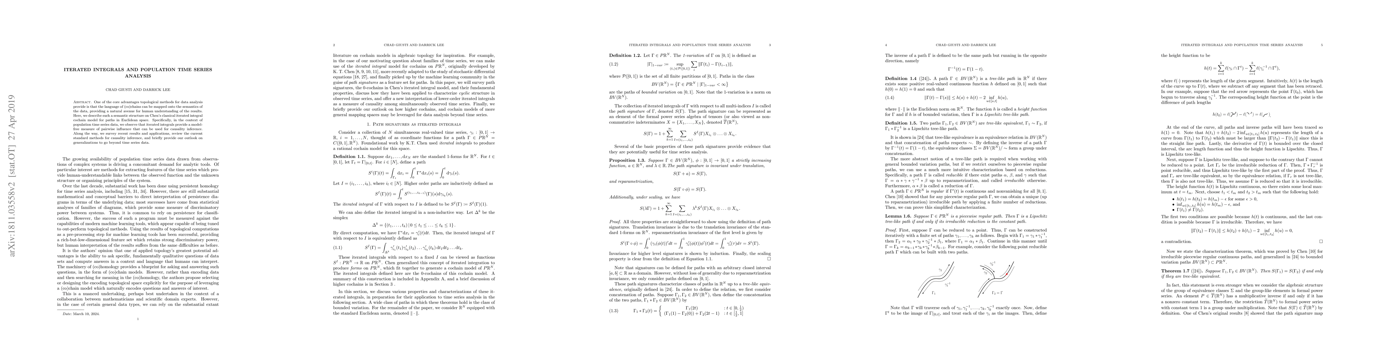 One of the core advantages topological methods for data analysis provide is that the language of (co)chains can be mapped onto the semantics of the data, providing a natural avenue for human understanding of the results. Here, we describe such a semantic structure on Chen's classical iterated integral cochain model for paths in Euclidean space. Specifically, in the context of population time series data, we observe that iterated integrals provide a model-free measure of pairwise influence that can be used for causality inference. Along the way, we survey recent results and applications, review the current standard methods for causality inference, and briefly provide our outlook on generalizations to go beyond time series data.