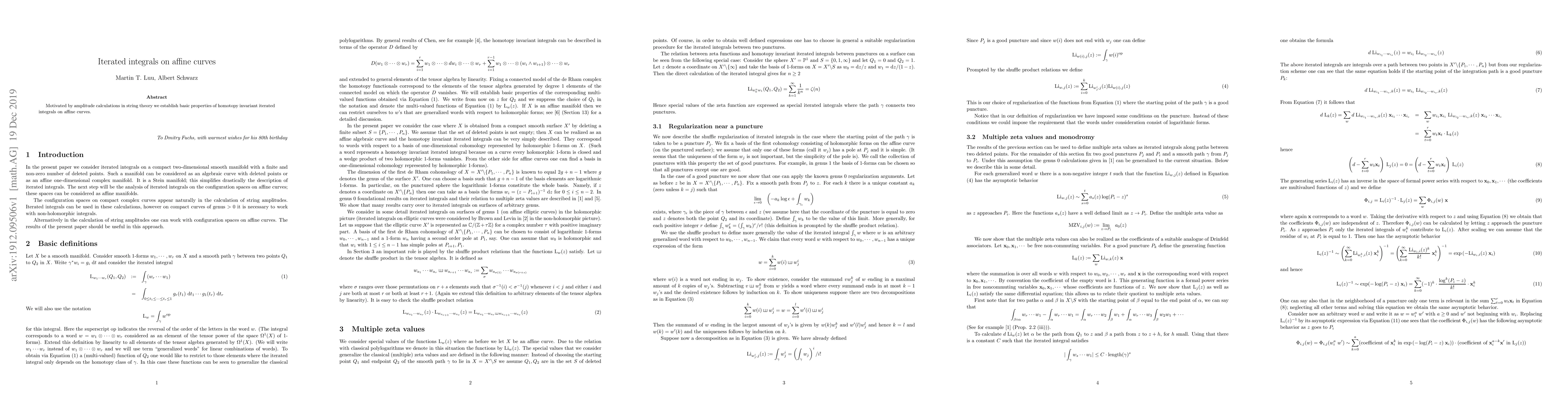 Motivated by amplitude calculations in string theory we establish basic properties of homotopy invariant iterated integrals on affine curves.