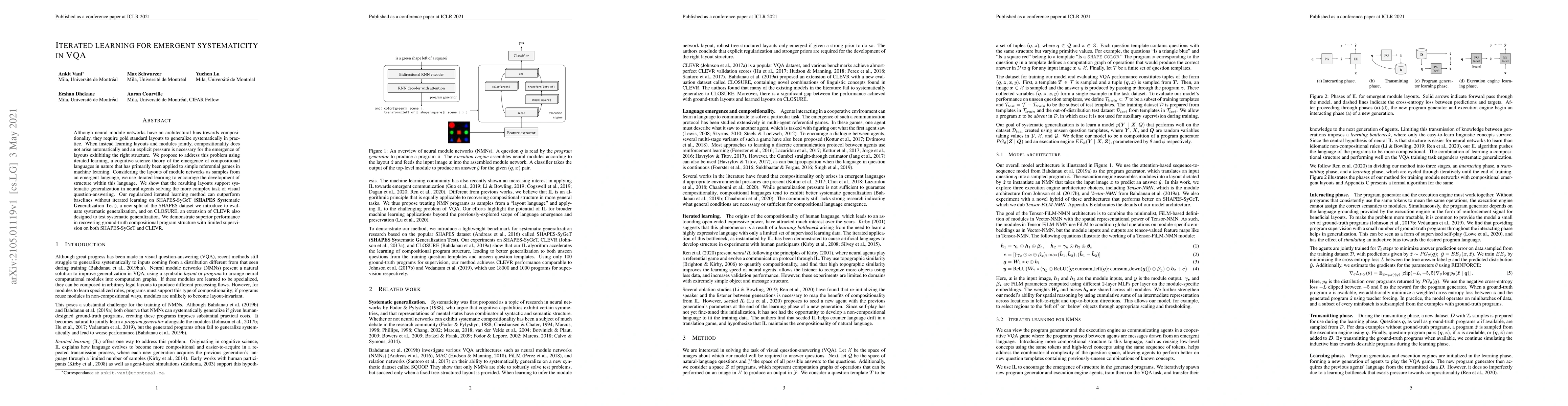 This paper proposes using iterated learning to develop compositional layouts in neural module networks, which enhances systematic generalization in visual question-answering tasks. The method outperforms baselines on SHAPES-SyGeT and CLOSURE datasets, demonstrating improved recovery of compositional program structure with minimal supervision.