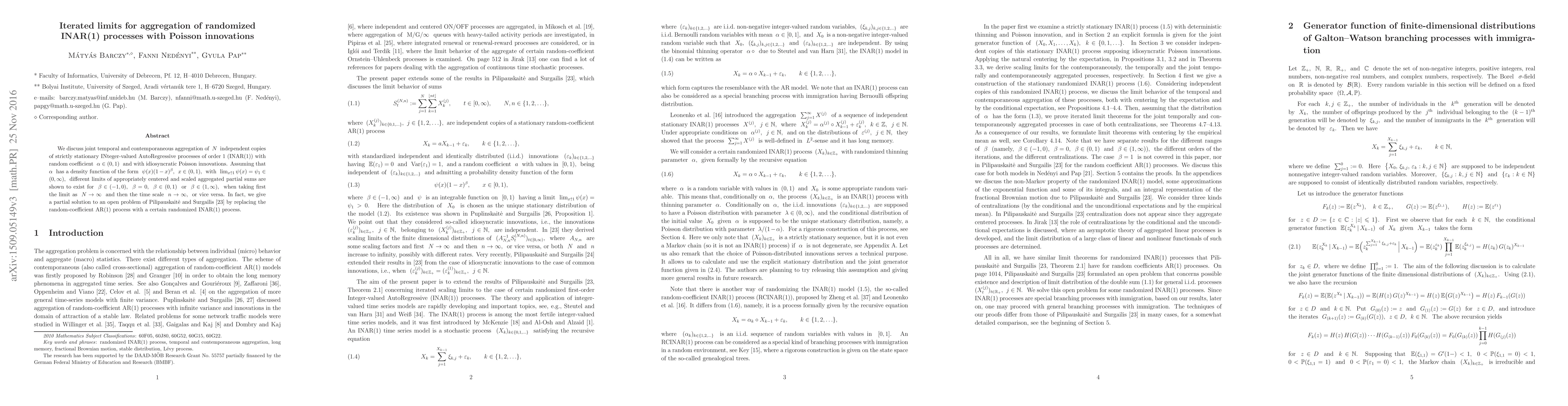 This paper explores the aggregation of $N$ independent INAR(1) processes with Poisson innovations and random coefficient $\alpha$. It examines different limits for the aggregated partial sums under various conditions on $\beta$, providing a partial solution to an open problem regarding random-coefficient AR(1) processes.