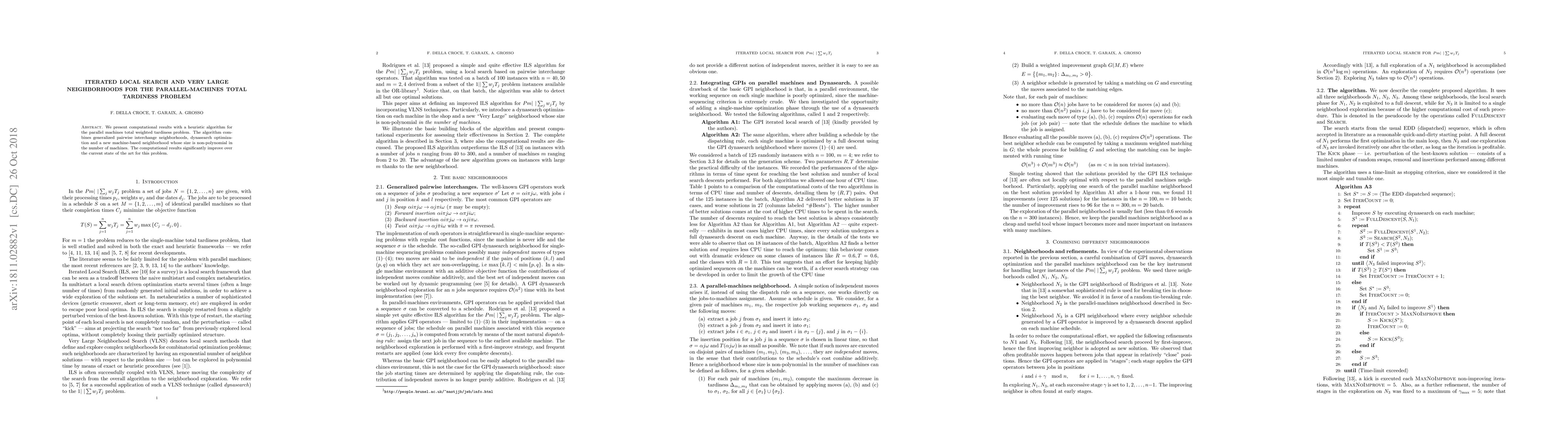 This paper introduces a heuristic algorithm for solving the parallel-machines total weighted tardiness problem using iterated local search with large neighborhoods, achieving better results than existing methods. The algorithm leverages generalized pairwise interchange neighborhoods and a novel machine-based neighborhood.