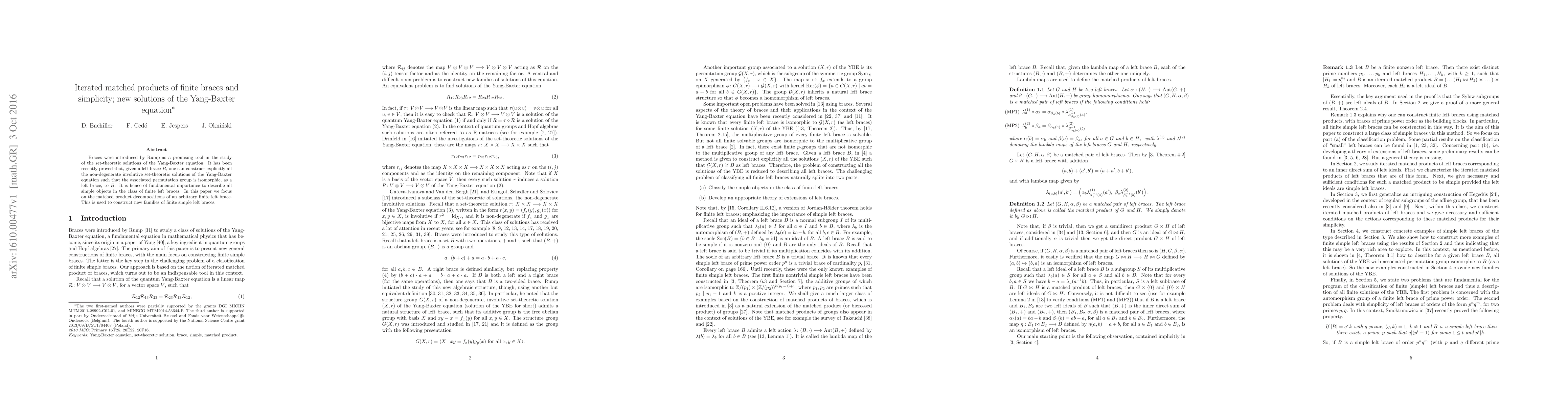 This paper explores the construction of new solutions to the Yang-Baxter equation using matched product decompositions of finite left braces. It specifically focuses on iterated matched product decompositions to generate new families of finite simple left braces.