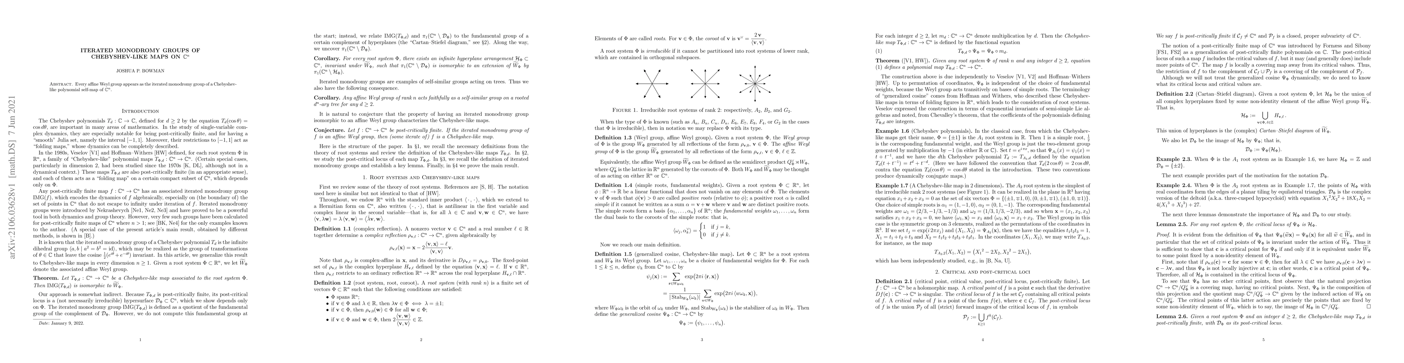 Every affine Weyl group appears as the iterated monodromy group of a Chebyshev-like polynomial self-map of $\mathbb{C}^n$.