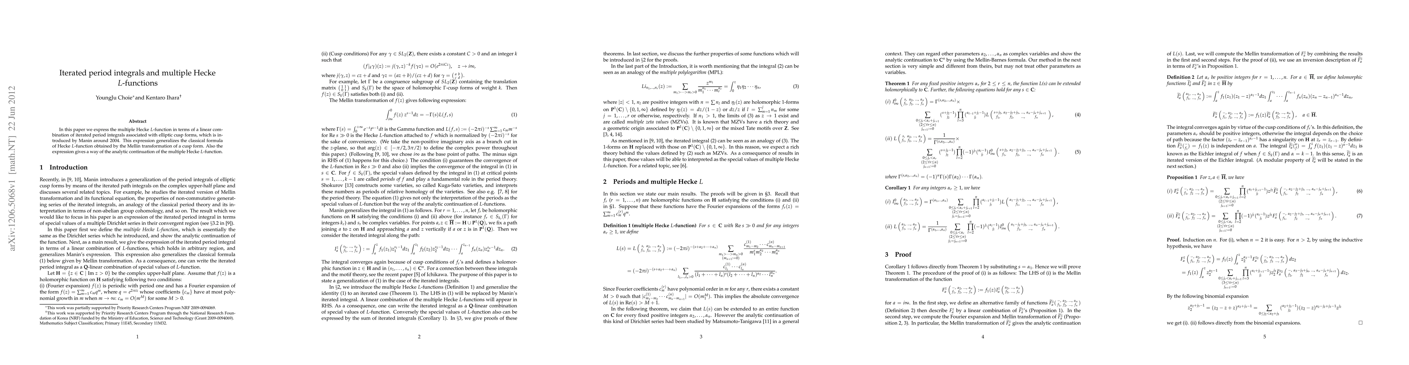 This paper expresses multiple Hecke $L$-functions as a linear combination of iterated period integrals linked to elliptic cusp forms, generalizing the classical Hecke $L$-function formula. It also provides a method for the analytic continuation of these multiple $L$-functions.