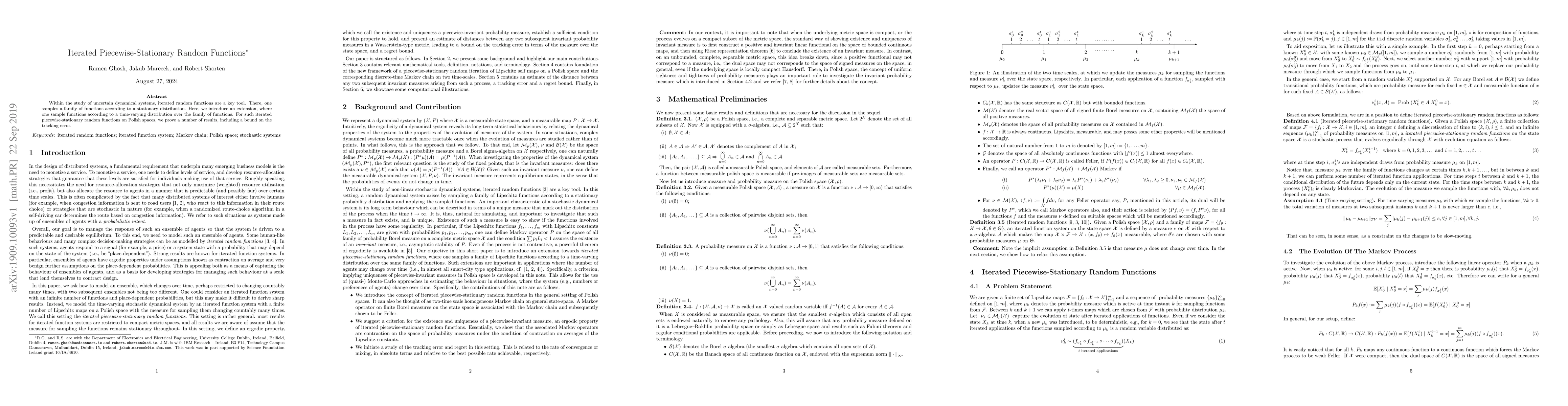 Within the study of uncertain dynamical systems, iterated random functions are a key tool. There, one samples a family of functions according to a stationary distribution. Here, we introduce an extension, where one sample functions according to a time-varying distribution over the family of functions. For such iterated piecewise-stationary random functions on Polish spaces, we prove a number of results, including a bound on the tracking error.