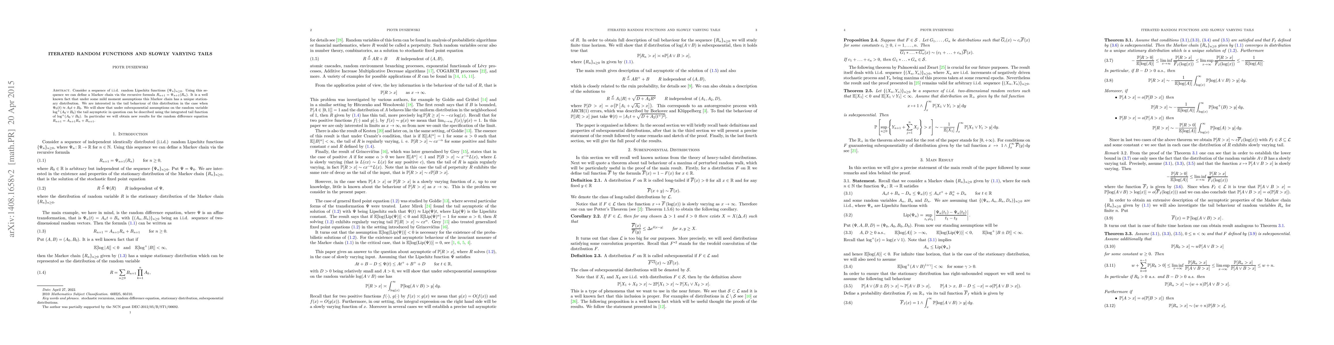 This paper investigates the tail behavior of a Markov chain defined by iterated random functions with slowly varying tails. It shows that under subexponential assumptions on the logarithm of the function's parameters, the tail distribution can be described using the integrated tail function.