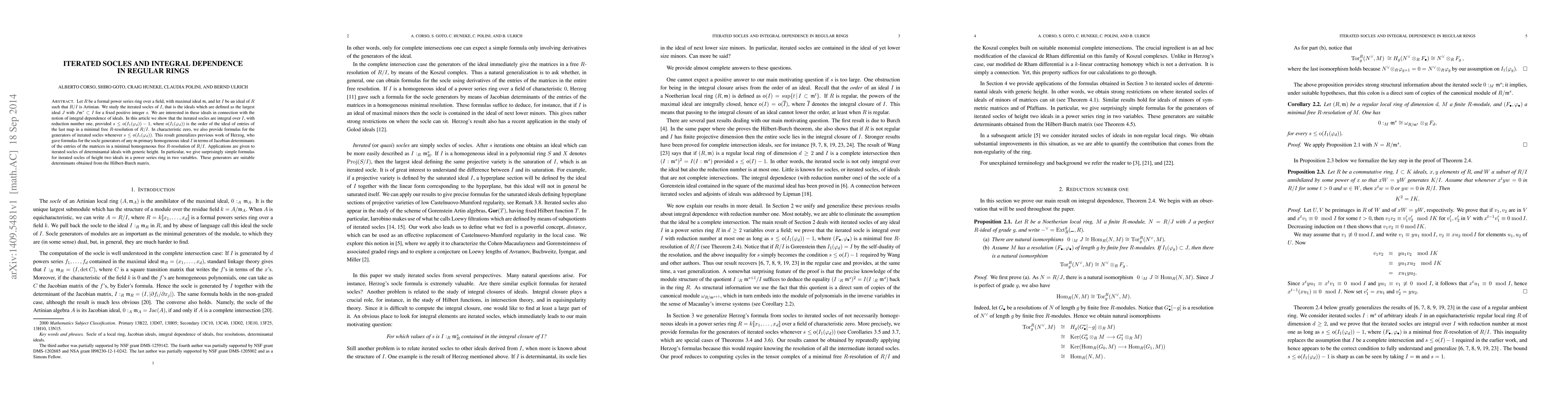 This paper investigates the iterated socles of an ideal $I$ in a regular ring $R$ over a field, showing they are integral over $I$ with reduction number one under certain conditions. It provides formulas for generators of these iterated socles in characteristic zero, generalizing previous work on socle generators and applying the results to determinantal ideals, particularly height two ideals in two-variable power series rings.