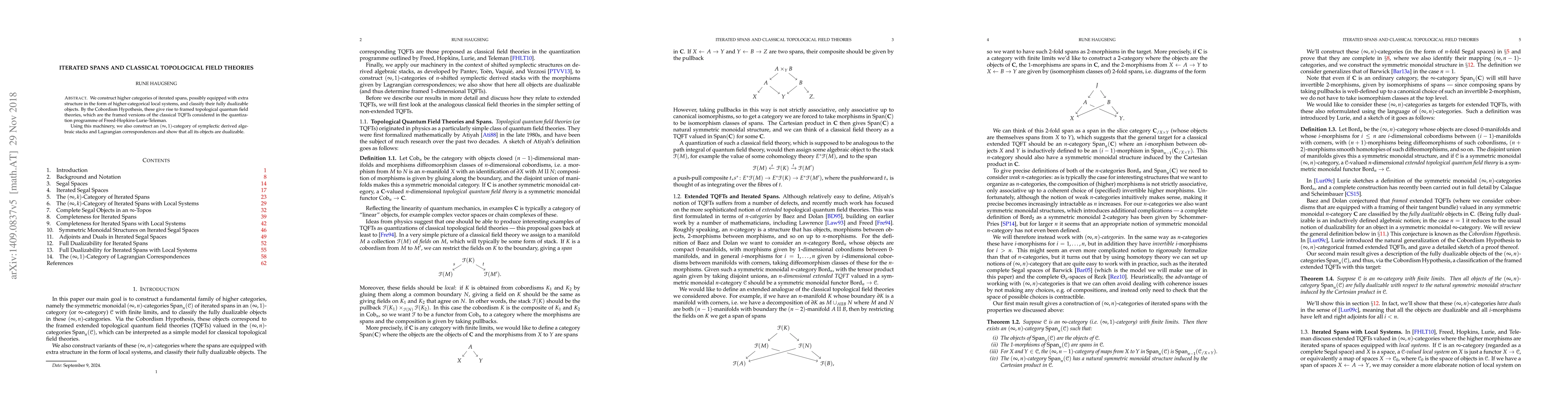 This research constructs higher categories of iterated spans, identifying their fully dualizable objects, which correspond to framed topological quantum field theories (TQFTs). It also introduces an infinity-category of Lagrangian correspondences between symplectic derived algebraic stacks, proving all objects are fully dualizable.