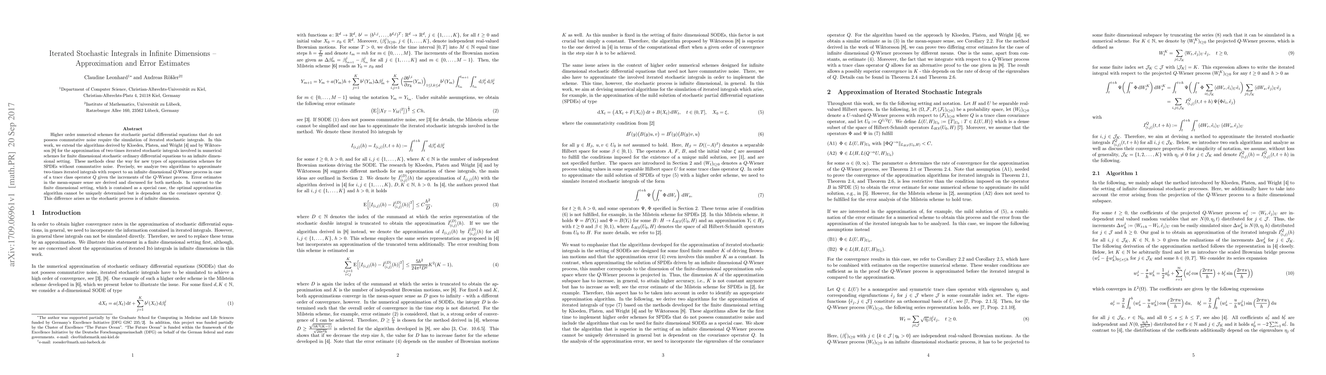 This paper extends algorithms for approximating two-times iterated stochastic integrals to infinite dimensions, providing new methods for solving stochastic partial differential equations with non-commutative noise. Error estimates are derived, highlighting the dependency of optimal approximation on the covariance operator in the infinite-dimensional setting.