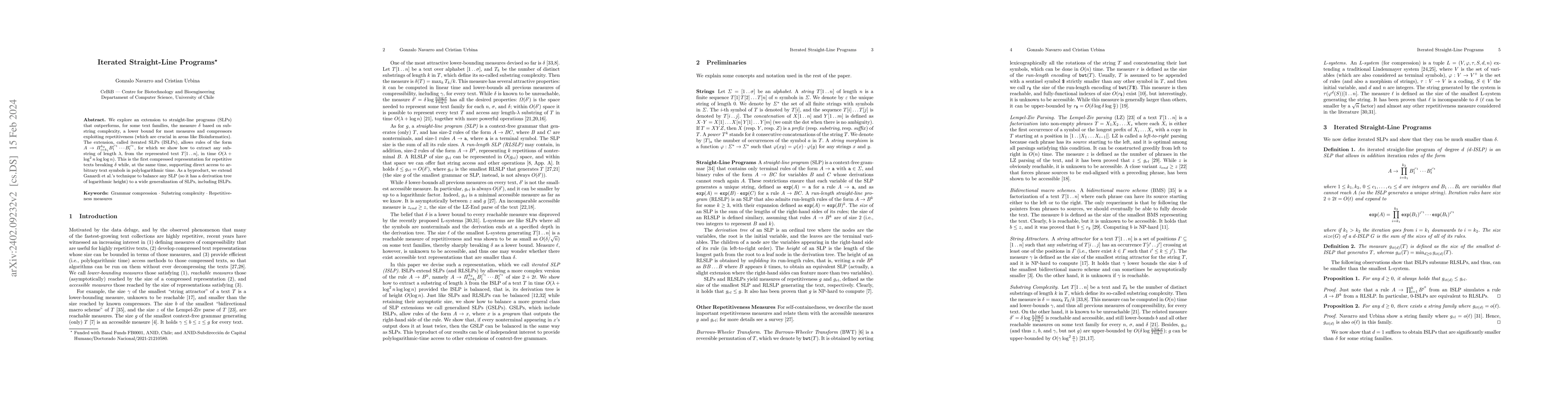 This paper introduces iterated straight-line programs (ISLPs) as an extension of SLPs that outperform $\delta$ based on substring complexity for certain text families, enabling direct access to text symbols in polylogarithmic time. The authors demonstrate how to extract substrings efficiently from represented texts.