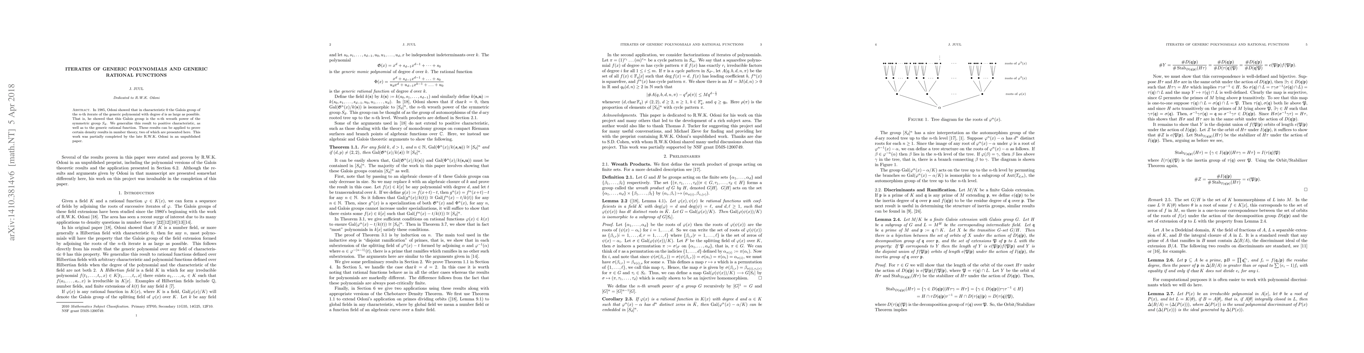 In 1985, Odoni showed that in characteristic $0$ the Galois group of the $n$-th iterate of the generic polynomial with degree $d$ is as large as possible. That is, he showed that this Galois group is the $n$-th wreath power of the symmetric group $S_d$. We generalize this result to positive characteristic, as well as to the generic rational function. These results can be applied to prove certain density results in number theory, two of which are presented here. This work was partially completed by the late R.W.K. Odoni in an unpublished paper.