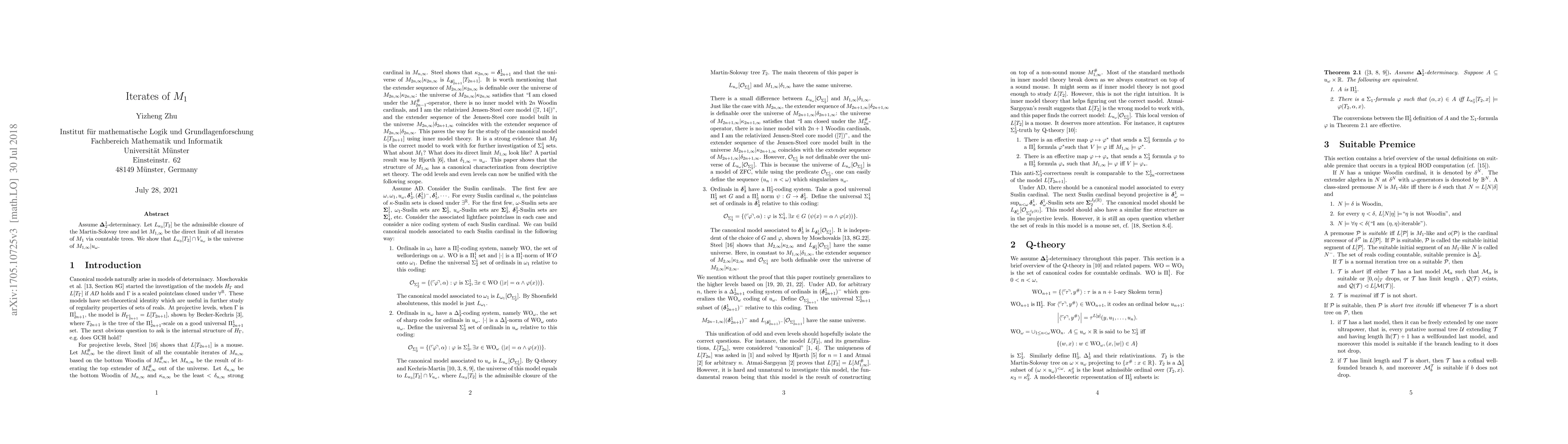 Assume $\boldsymbol{\Delta}^1_{2}$-determinacy. Let $L_{\kappa_3}[T_2]$ be the admissible closure of the Martin-Solovay tree and let $M_{1,\infty}$ be the direct limit of $M_1$ via countable trees. We show that $L_{\kappa_3}[T_2] \cap V_{u_{\omega}} = M_{1,\infty} | u_{\omega}$.