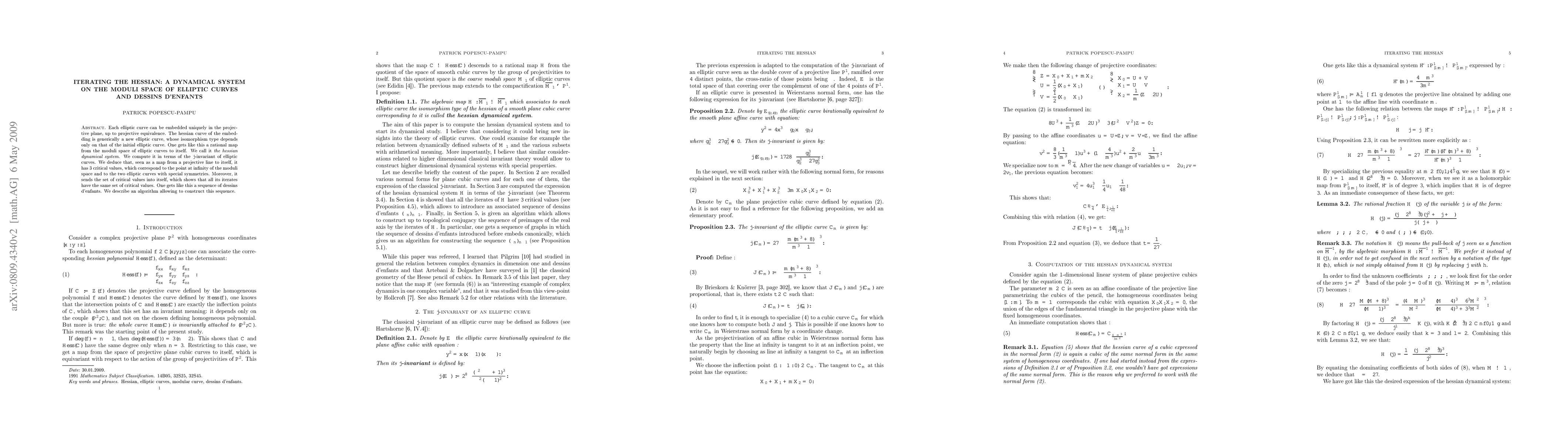 A new mathematical system is described that maps elliptic curves to themselves, generating a sequence of complex shapes called dessins d'enfants through its iterations. The system has 3 critical values and preserves them in its iterates.