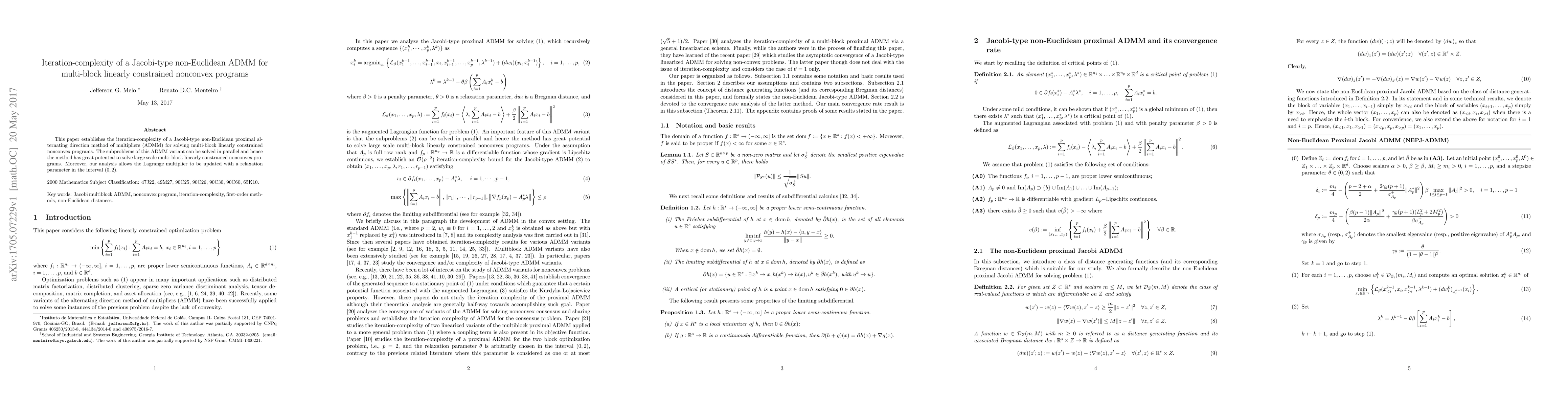 This paper investigates the iteration-complexity of a parallelizable Jacobi-type non-Euclidean ADMM for solving multi-block linearly constrained nonconvex programs, demonstrating its potential for large-scale problems. The analysis permits the Lagrange multiplier to be updated using a relaxation parameter between 0 and 2.
