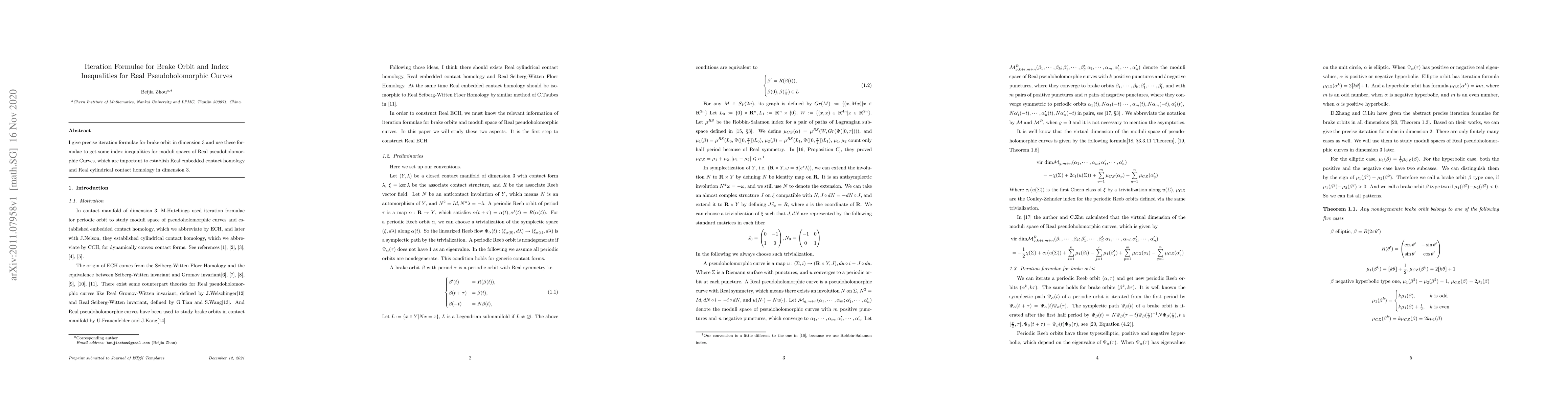 I give precise iteration formulae for brake orbit in dimension 3 and use these formulae to get some index inequalities for moduli spaces of Real pseudoholomorphic Curves, which are important to establish Real embedded contact homology and Real cylindrical contact homology in dimension 3.