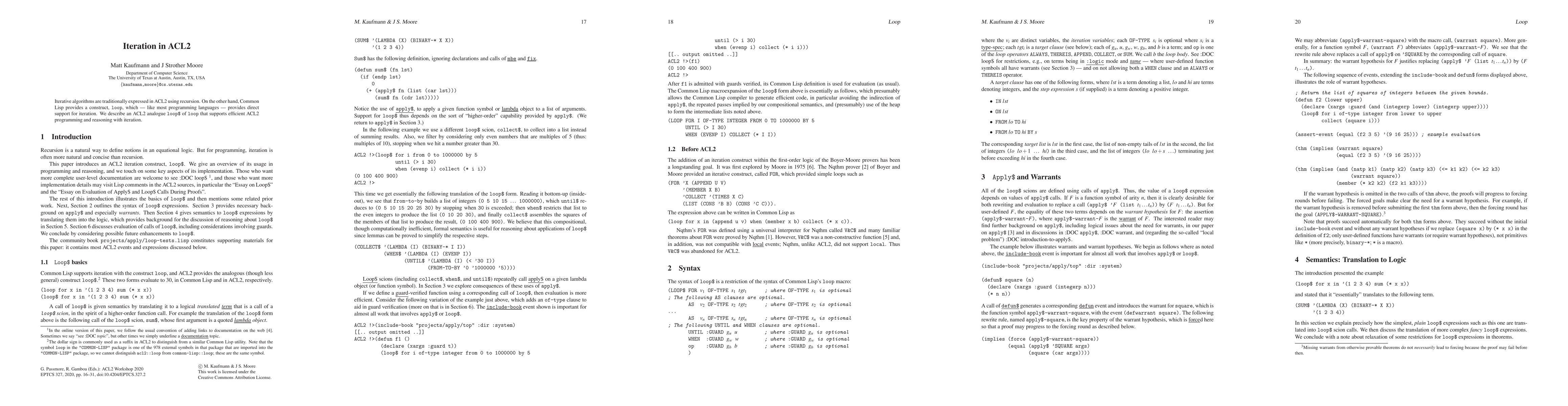 This paper introduces loop$, an ACL2 analogue of Common Lisp's loop construct, designed to facilitate efficient programming and reasoning with iterative algorithms in ACL2, offering an alternative to traditional recursive methods.