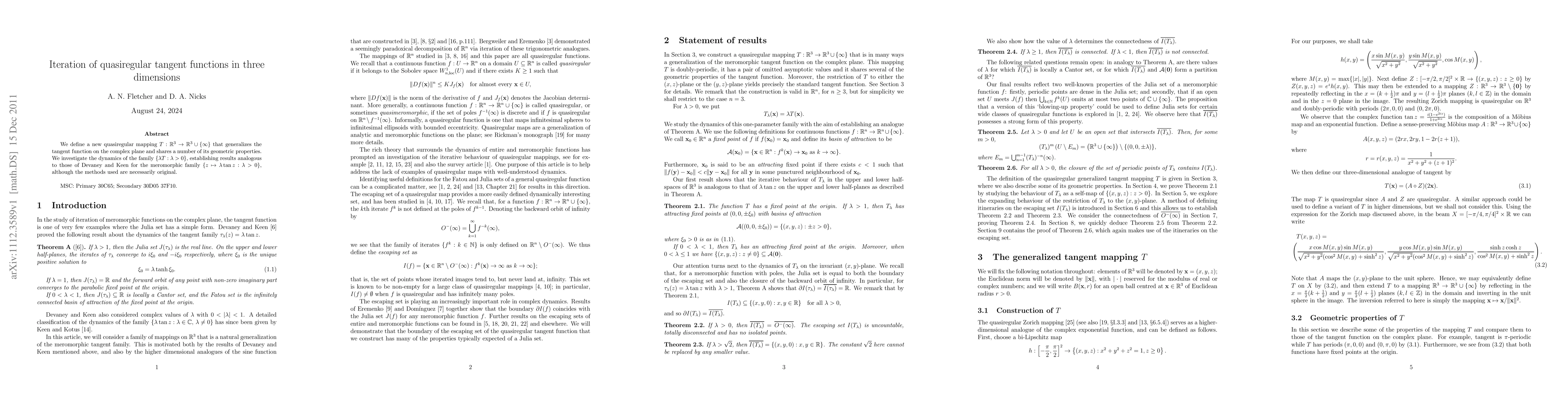 This paper introduces a new quasiregular mapping in 3D space that generalizes the tangent function, investigating its dynamics for positive values of lambda, with results analogous to those on the complex plane.