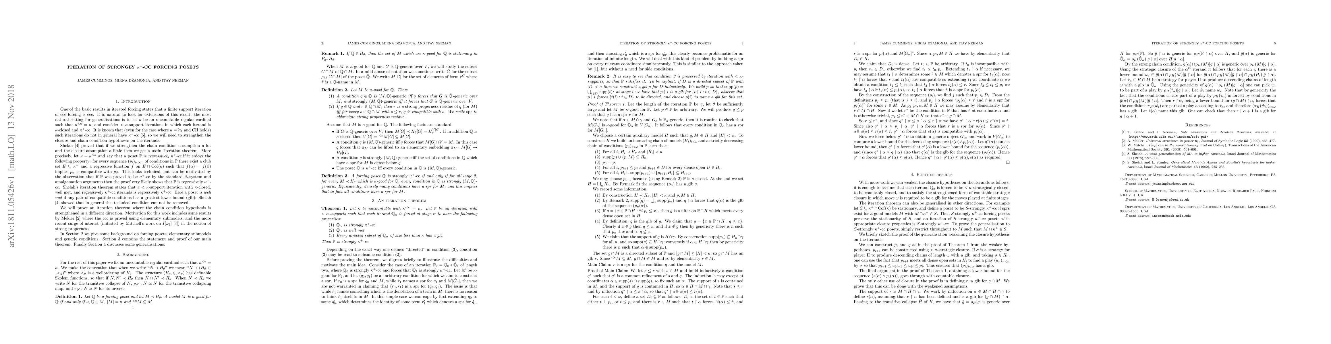 We prove some iteration theorems for a certain class of $\kappa^+$-cc forcing posets.