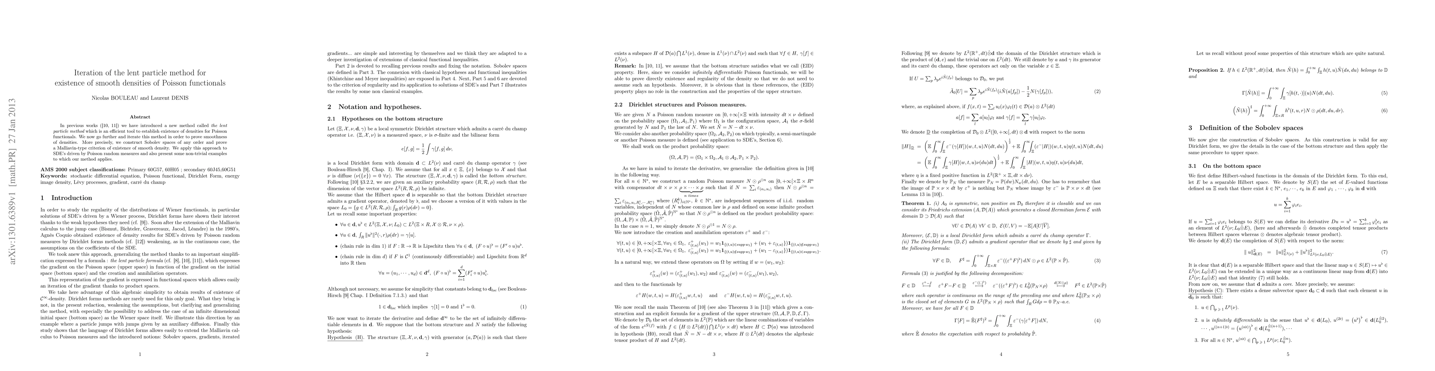 This research iterates the lent particle method to prove the smoothness of densities for Poisson functionals, constructing Sobolev spaces of any order and providing a Malliavin-type criterion for smooth density existence. The method is applied to SDE's driven by Poisson random measures with illustrative examples.
