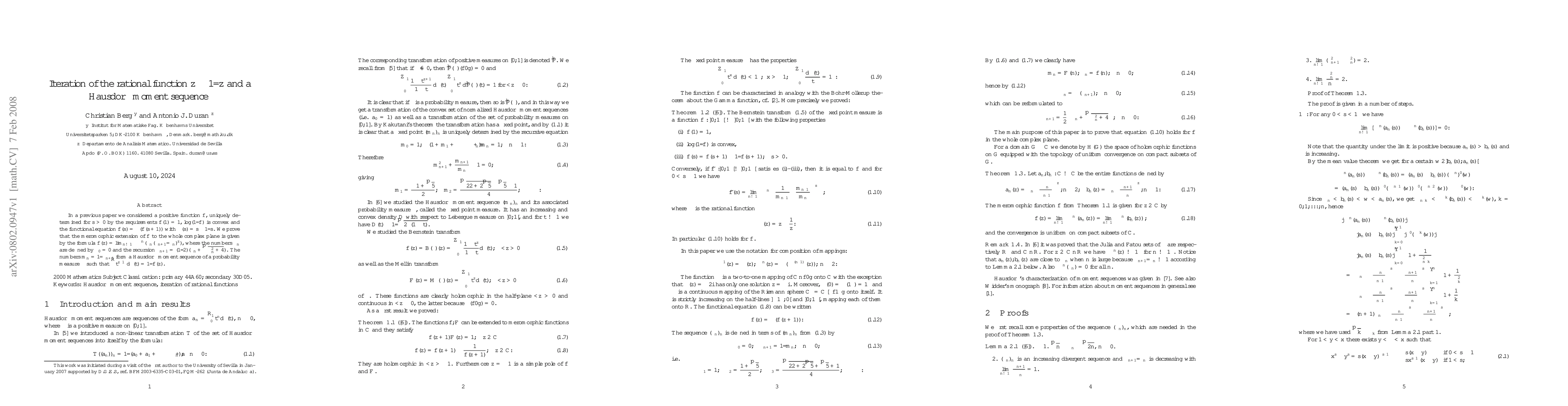 In a previous paper we considered a positive function f, uniquely determined for s>0 by the requirements f(1)=1, log(1/f) is convex and the functional equation f(s)=psi(f(s+1)) with psi(s)=s-1/s. We prove that the meromorphic extension of f to the whole complex plane is given by the formula f(z)=lim_{n\to\infty}psi^{\circ n}(lambda_n(lambda_{n+1}/lambda_n)^z), where the numbers lambda_n are defined by lambda_0=0 and the recursion lambda_{n+1}=(1/2)(lambda_n+sqrt{lambda_n^2+4}). The numbers m_n=1/lambda_{n+1} form a Hausdorff moment sequence of a probability measure \mu such that \int t^{z-1}d\mu(t)=1/f(z)