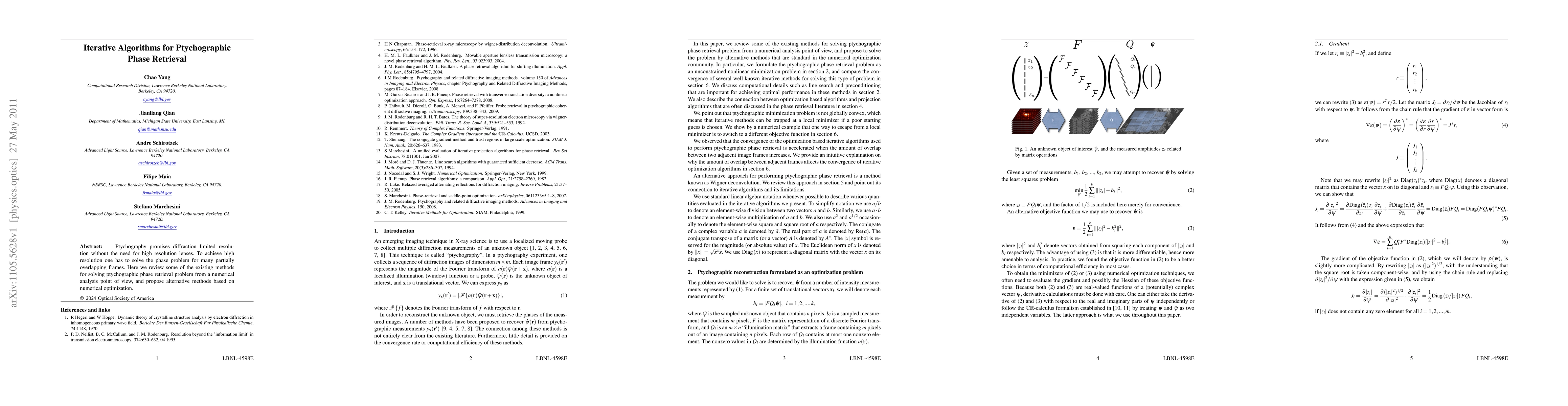 This paper reviews existing iterative algorithms for solving ptychographic phase retrieval, emphasizing the phase problem in diffraction-limited resolution ptychography, and proposes new numerical optimization methods to improve resolution without high-resolution lenses.