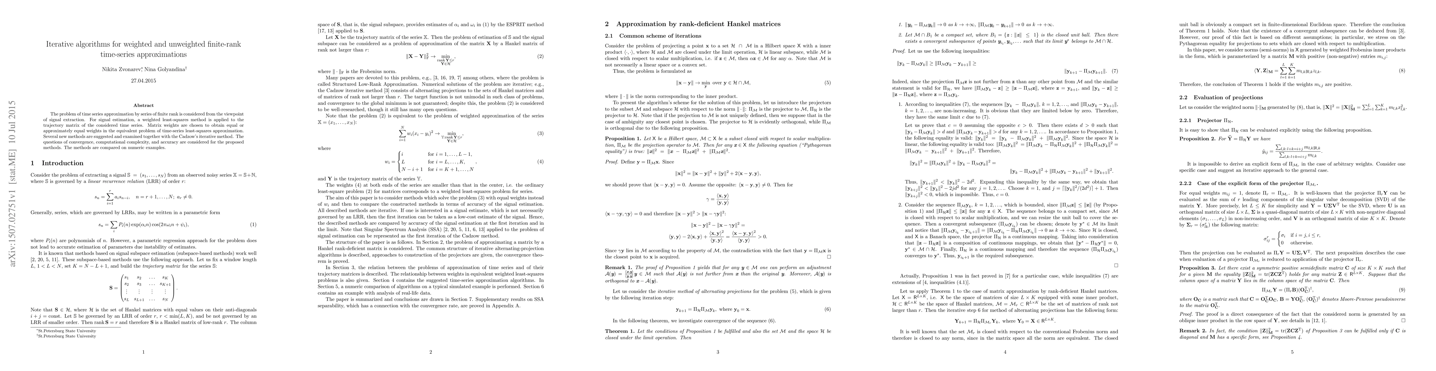 Researchers developed new methods for approximating time series using finite-rank series, focusing on signal extraction and convergence, and compared their performance on numeric examples.