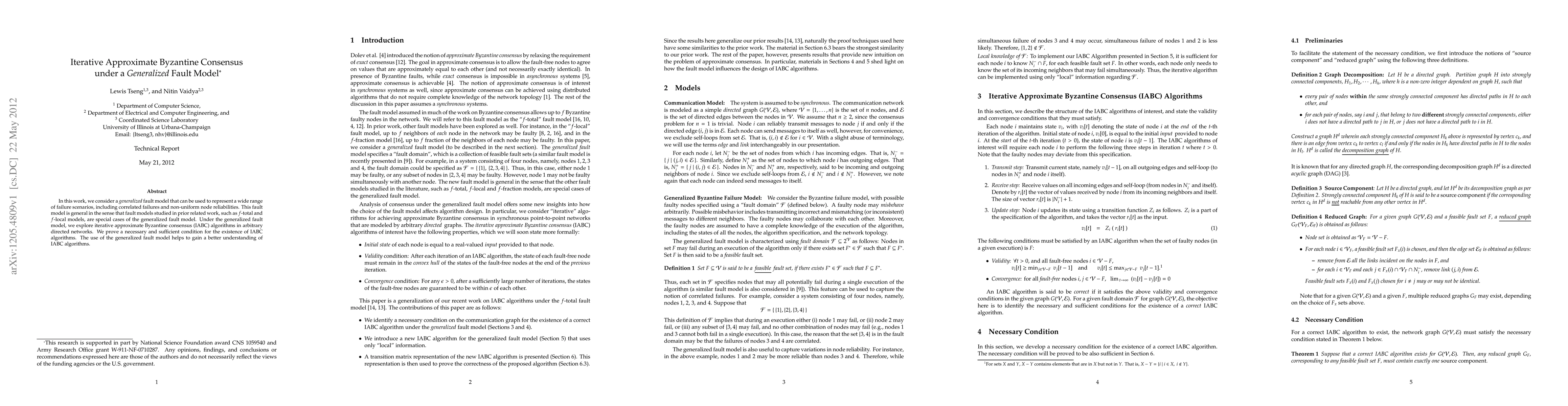 Researchers developed a generalized fault model for Byzantine consensus algorithms to handle various failure scenarios, proving necessary conditions for the existence of iterative approximate Byzantine consensus algorithms in arbitrary directed networks.