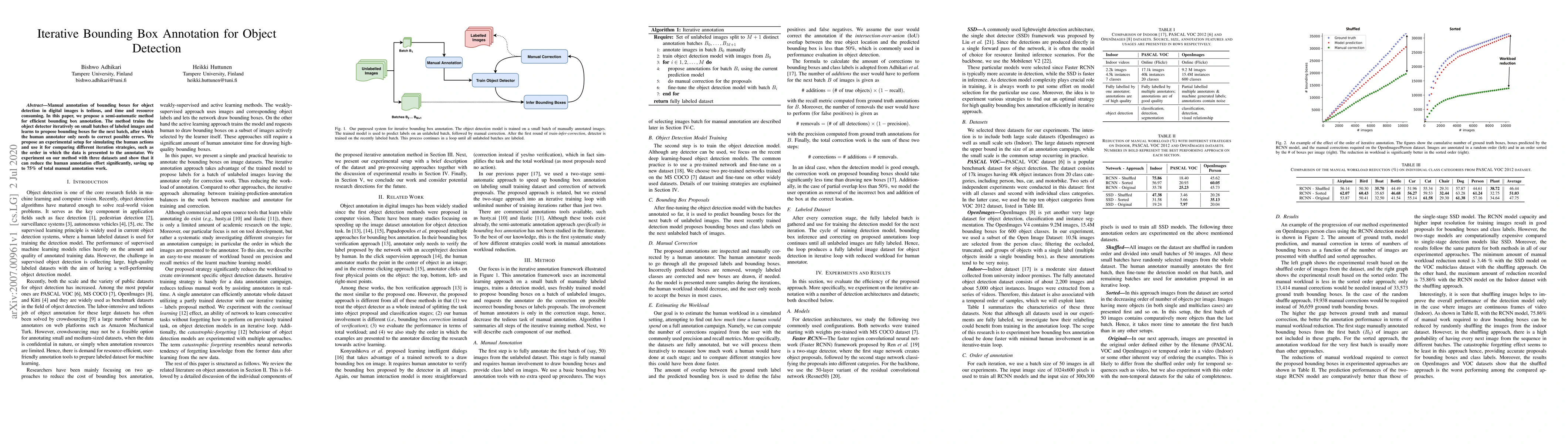 This paper proposes a semi-automatic method to reduce the effort of manual bounding box annotation for object detection, utilizing iterative training of an object detector to propose boxes, which the human annotator corrects. Experiments show a significant reduction in annotation effort, up to 75%.
