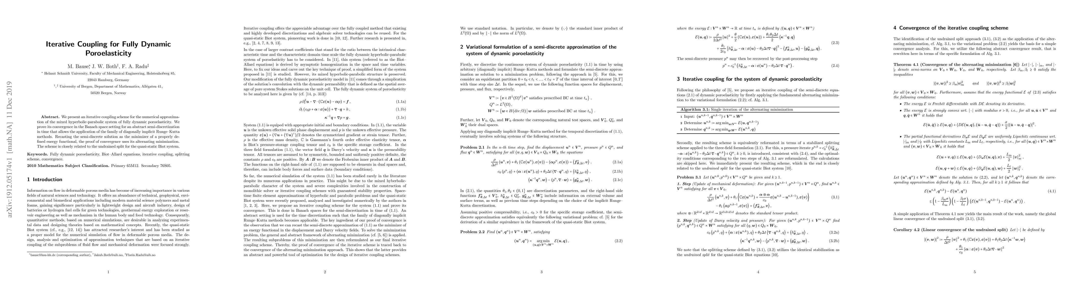 We present an iterative coupling scheme for the numerical approximation of the mixed hyperbolic-parabolic system of fully dynamic poroelasticity. We prove its convergence in the Banach space setting for an abstract semi-discretization in time that allows the application of the family of diagonally implicit Runge-Kutta methods. Recasting the semi-discrete solution as the minimizer of a properly defined energy functional, the proof of convergence uses its alternating minimization. The scheme is closely related to the undrained split for the quasi-static Biot system.
