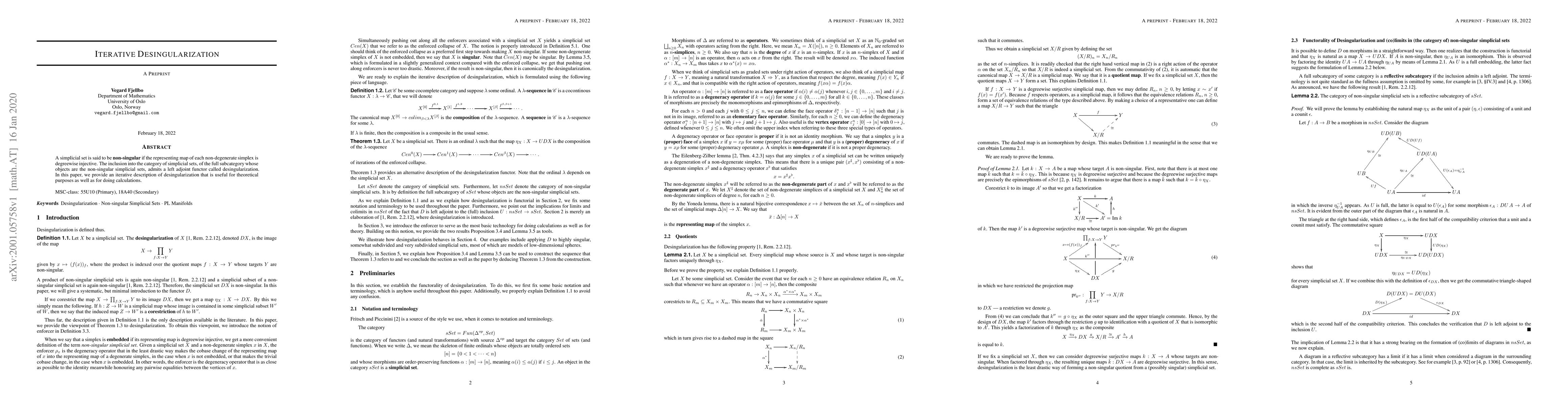 This paper introduces an iterative method for desingularization of simplicial sets, a process that transforms non-singular simplicial sets into a more manageable form, providing both theoretical insights and practical computational tools.