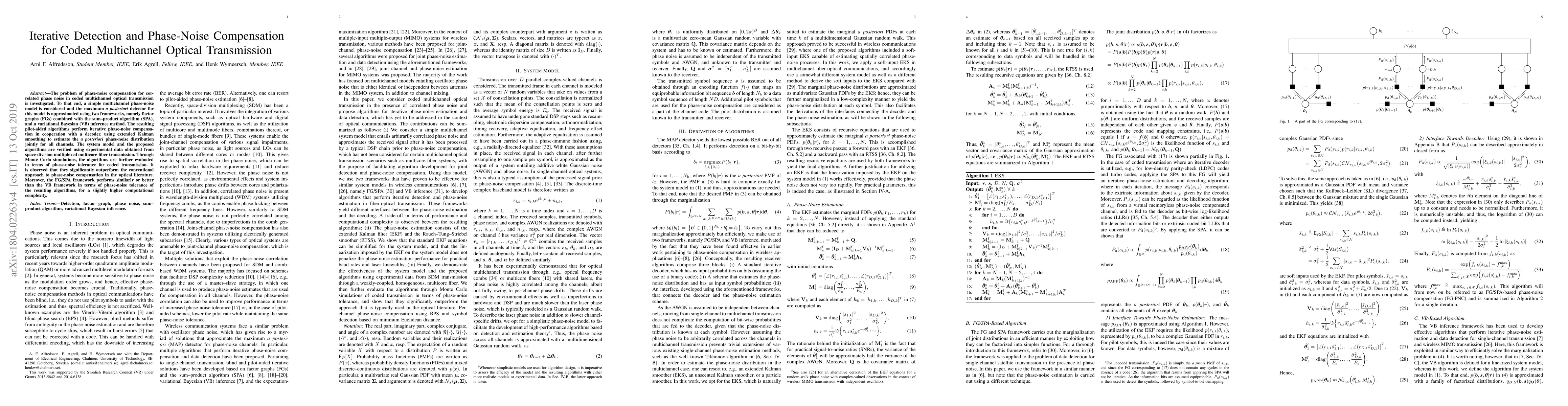 This paper proposes iterative phase-noise compensation algorithms for coded multichannel optical transmission using factor graphs and variational Bayesian inference, significantly outperforming conventional methods. Experimental and simulation results show improved phase-noise tolerance, with the factor graph approach offering comparable or better performance at a higher computational cost.