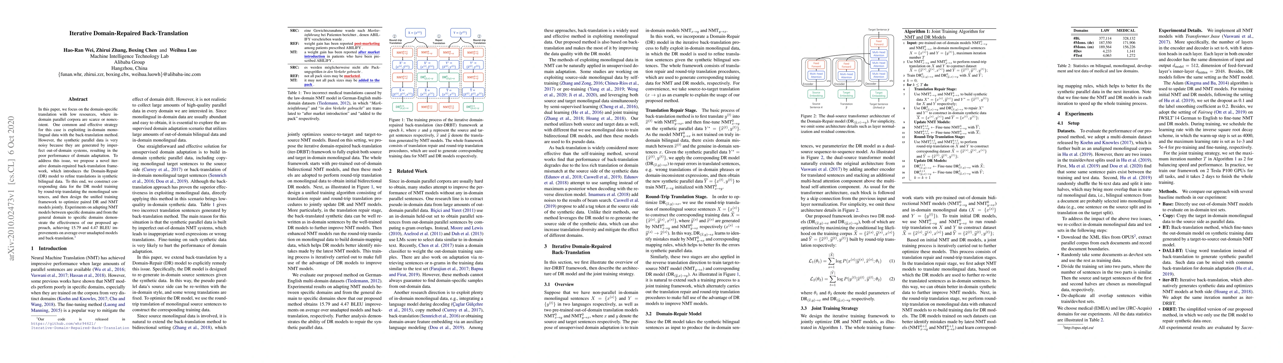 This paper proposes an iterative domain-repaired back-translation framework to improve domain-specific translation with limited resources. It introduces a Domain-Repair model to refine noisy synthetic parallel data, achieving notable BLEU score improvements in domain adaptation tasks.