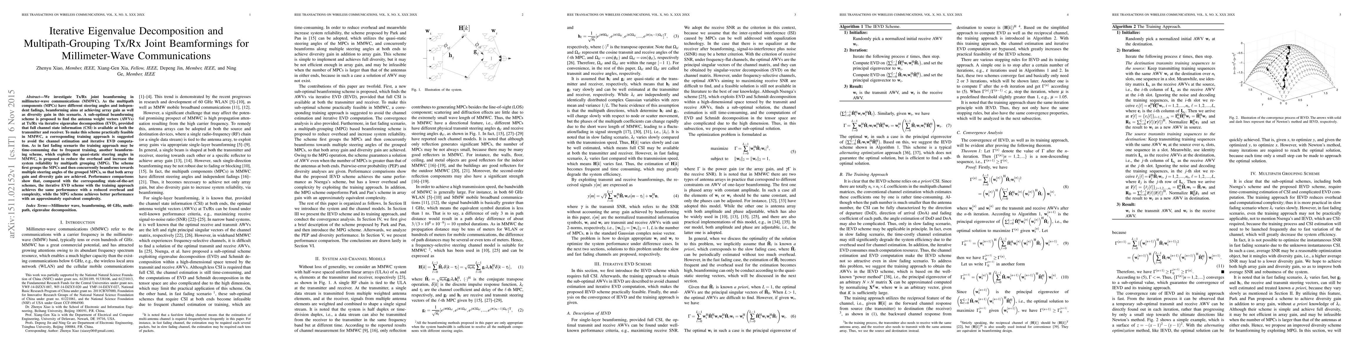 The paper presents an iterative EVD scheme with a training approach for MMWC and a multipath grouping (MPG) scheme that reduces overhead and increases reliability in fast fading scenarios.