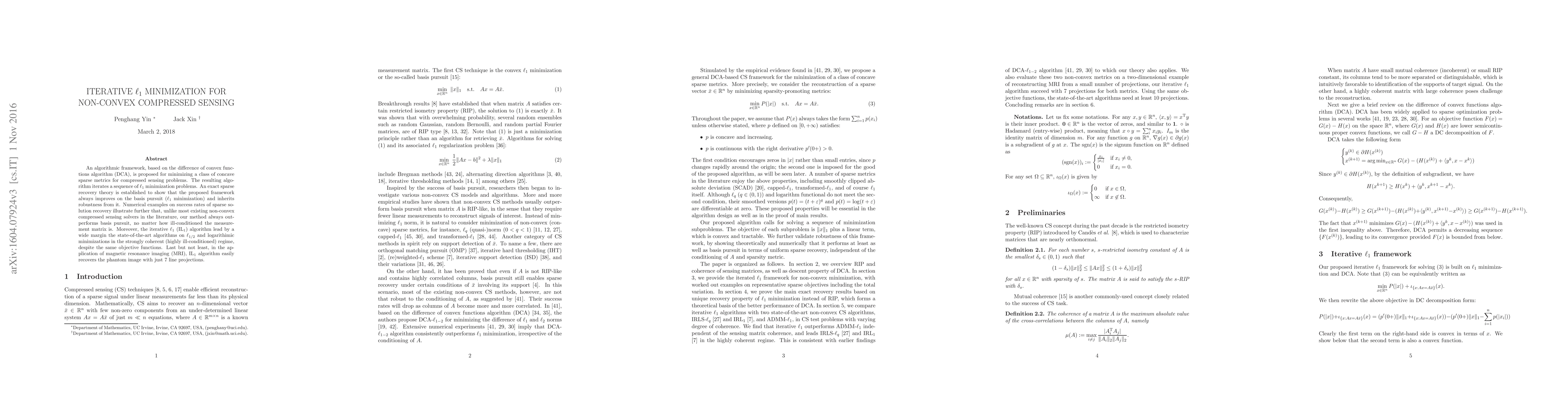 This paper proposes an iterative $\ell_1$ minimization framework based on the difference of convex functions algorithm (DCA) for non-convex compressed sensing, demonstrating superior performance over basis pursuit and state-of-the-art algorithms, especially in ill-conditioned scenarios, and successfully applying it to MRI reconstruction with minimal data.