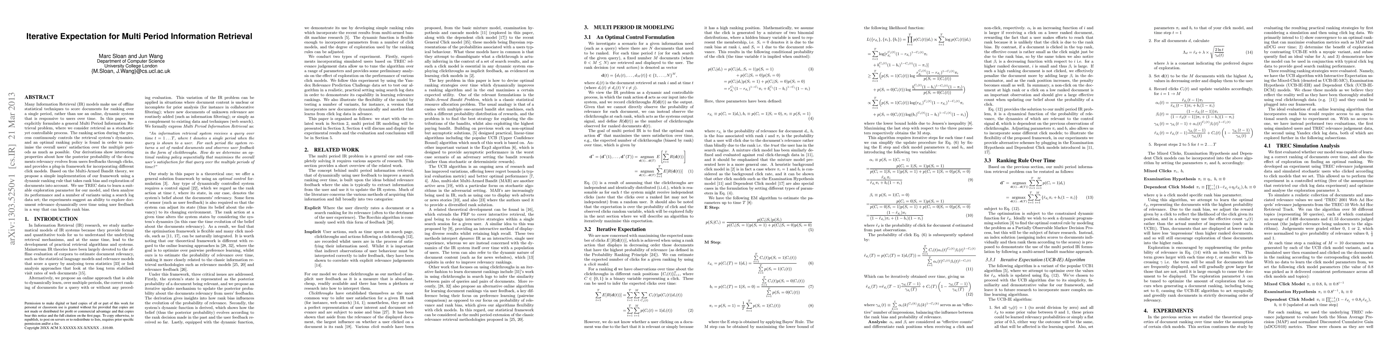 Many Information Retrieval (IR) models make use of offline statistical techniques to score documents for ranking over a single period, rather than use an online, dynamic system that is responsive to users over time. In this paper, we explicitly formulate a general Multi Period Information Retrieval problem, where we consider retrieval as a stochastic yet controllable process. The ranking action during the process continuously controls the retrieval system's dynamics, and an optimal ranking policy is found in order to maximise the overall users' satisfaction over the multiple periods as much as possible. Our derivations show interesting properties about how the posterior probability of the documents relevancy evolves from users feedbacks through clicks, and provides a plug-in framework for incorporating different click models. Based on the Multi-Armed Bandit theory, we propose a simple implementation of our framework using a dynamic ranking rule that takes rank bias and exploration of documents into account. We use TREC data to learn a suitable exploration parameter for our model, and then analyse its performance and a number of variants using a search log data set; the experiments suggest an ability to explore document relevance dynamically over time using user feedback in a way that can handle rank bias.