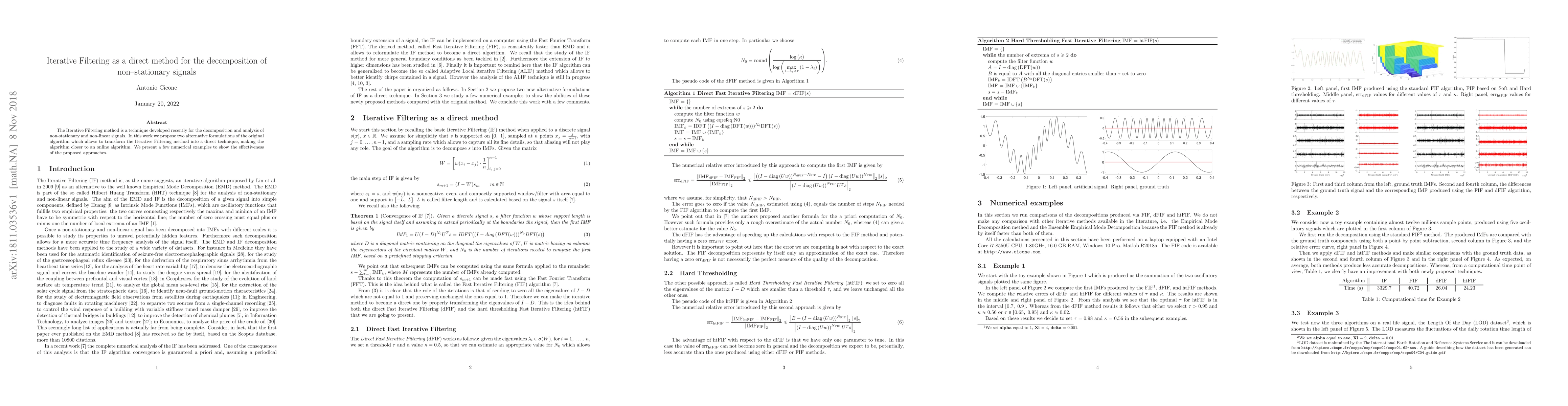The Iterative Filtering method is refined into a direct technique for decomposing non-stationary signals, transforming it into an online algorithm. The proposed alternative formulations are demonstrated through numerical examples to validate their effectiveness.