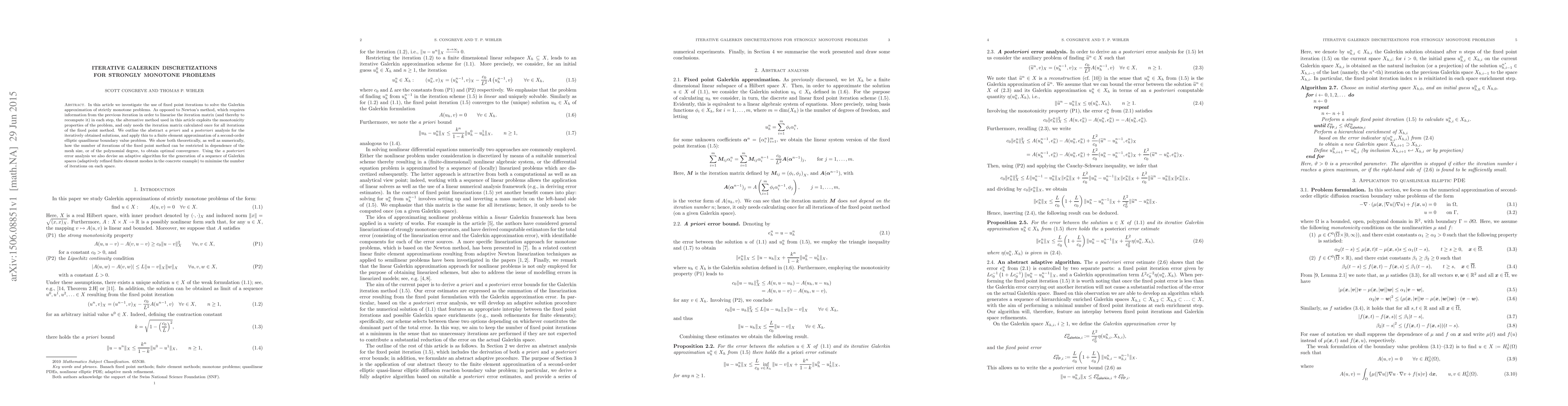 In this article we investigate a finite element formulation of strongly monotone quasi-linear elliptic PDEs in the context of fixed-point iterations. As opposed to Newton's method, which requires information from the previous iteration in order to linearise the iteration matrix (and thereby to recompute it) in each step, the alternative method used in this article exploits the monotonicity properties of the problem, and only needs the iteration matrix calculated once for all iterations of the fixed-point method. We outline the a priori and a posteriori error estimates for iteratively obtained solutions, and show both theoretically as well as numerically how the number of iterations of the fixed-point method can be restricted in dependence of the mesh size, or of the polynomial degree, to obtain optimal convergence.