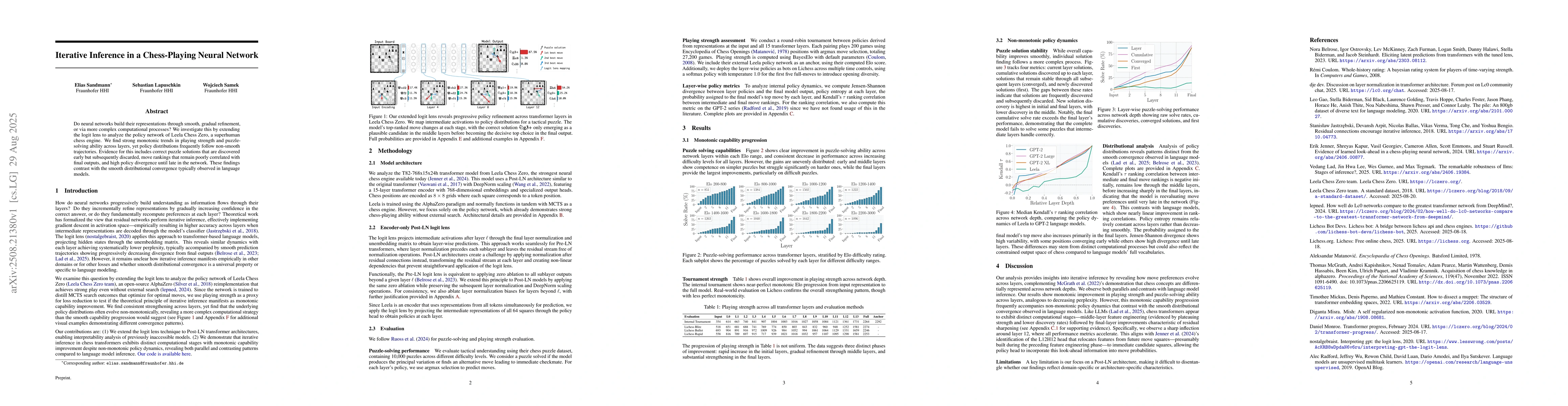 Do neural networks build their representations through smooth, gradual refinement, or via more complex computational processes? We investigate this by extending the logit lens to analyze the policy network of Leela Chess Zero, a superhuman chess engine. We find strong monotonic trends in playing strength and puzzle-solving ability across layers, yet policy distributions frequently follow non-smooth trajectories. Evidence for this includes correct puzzle solutions that are discovered early but subsequently discarded, move rankings that remain poorly correlated with final outputs, and high policy divergence until late in the network. These findings contrast with the smooth distributional convergence typically observed in language models.